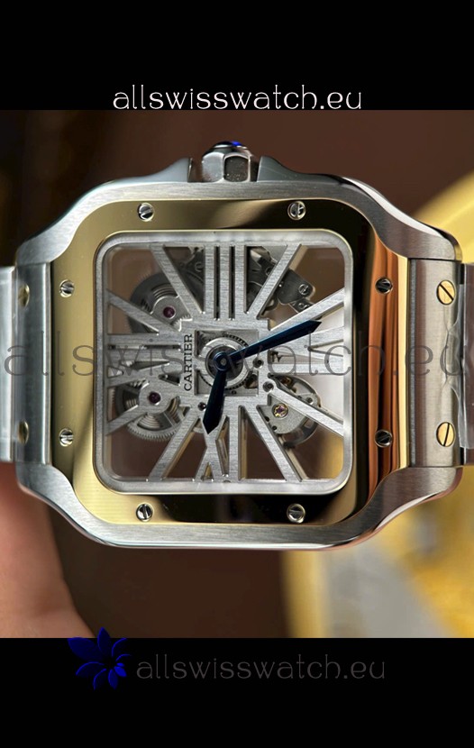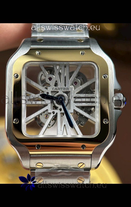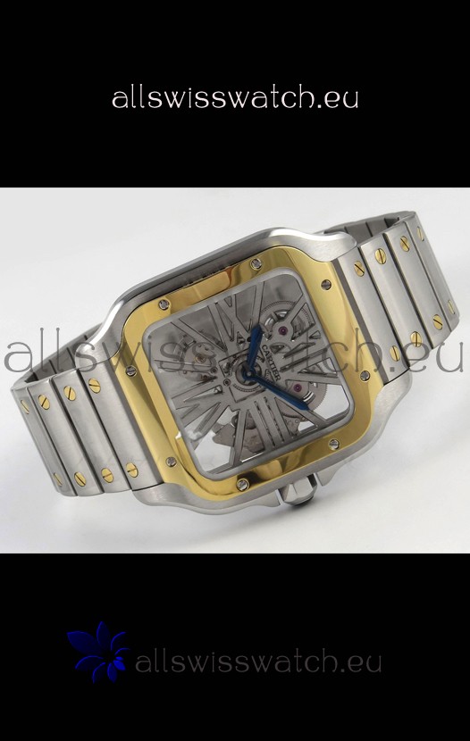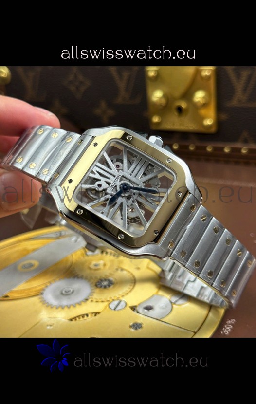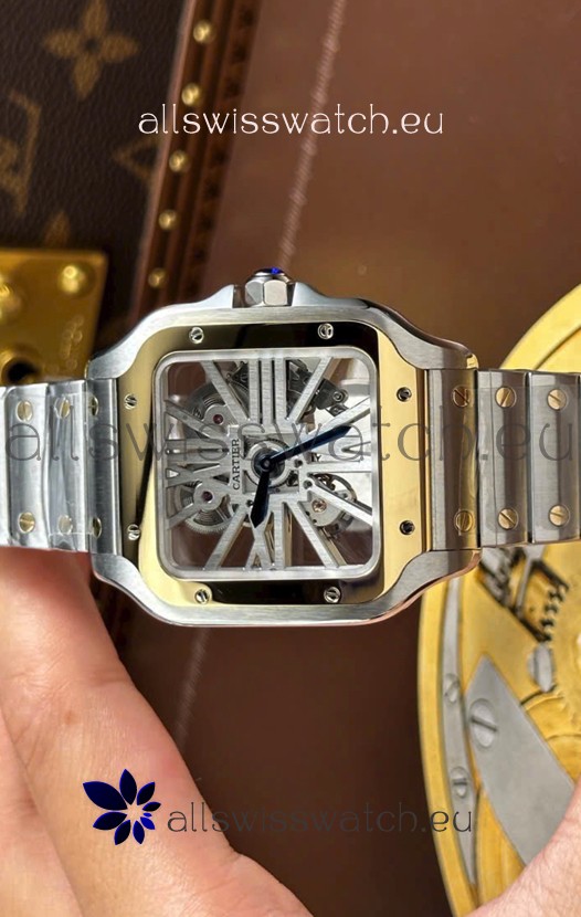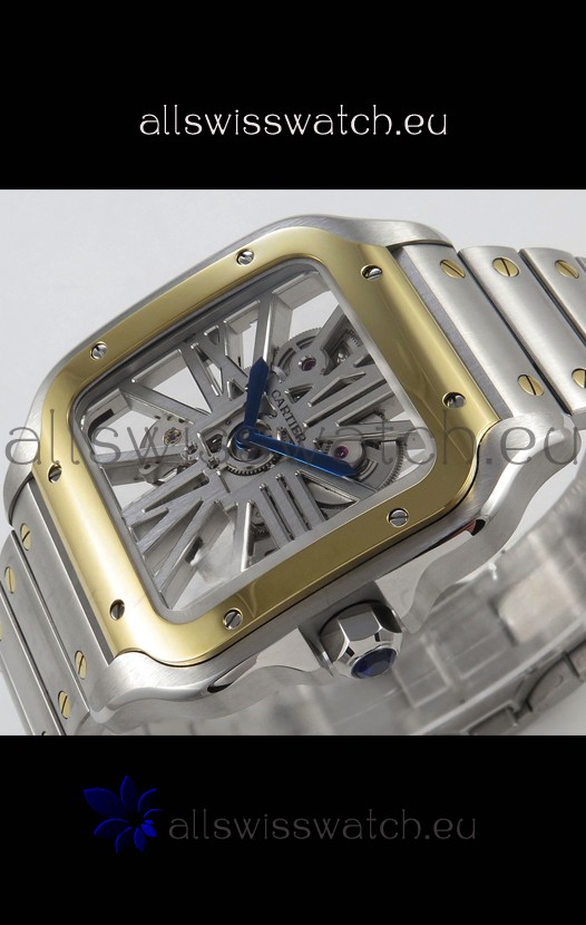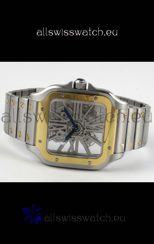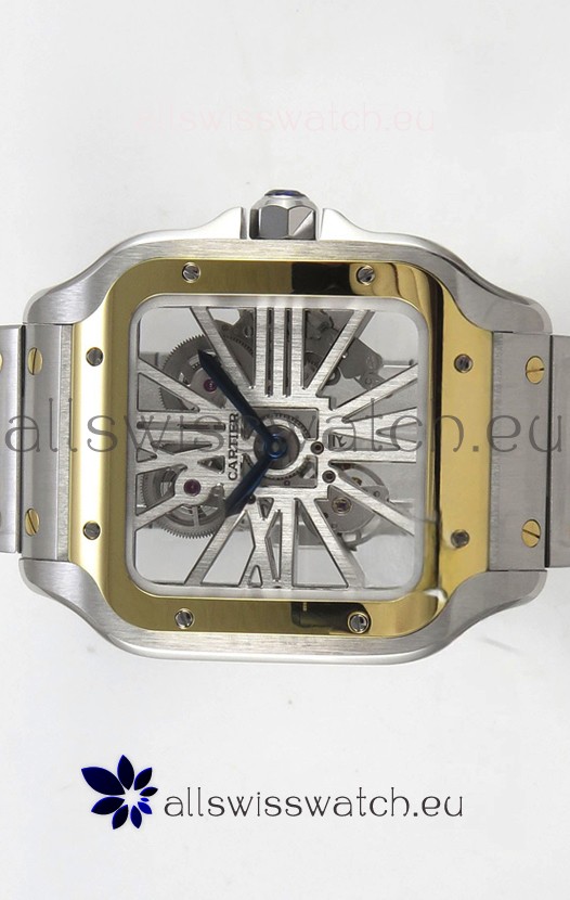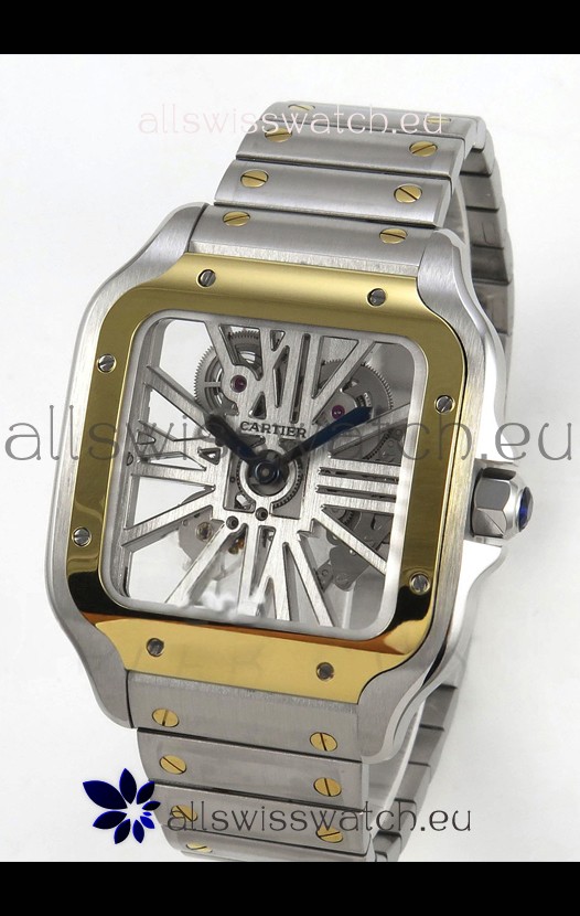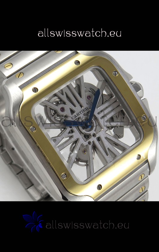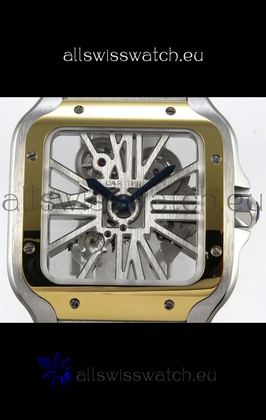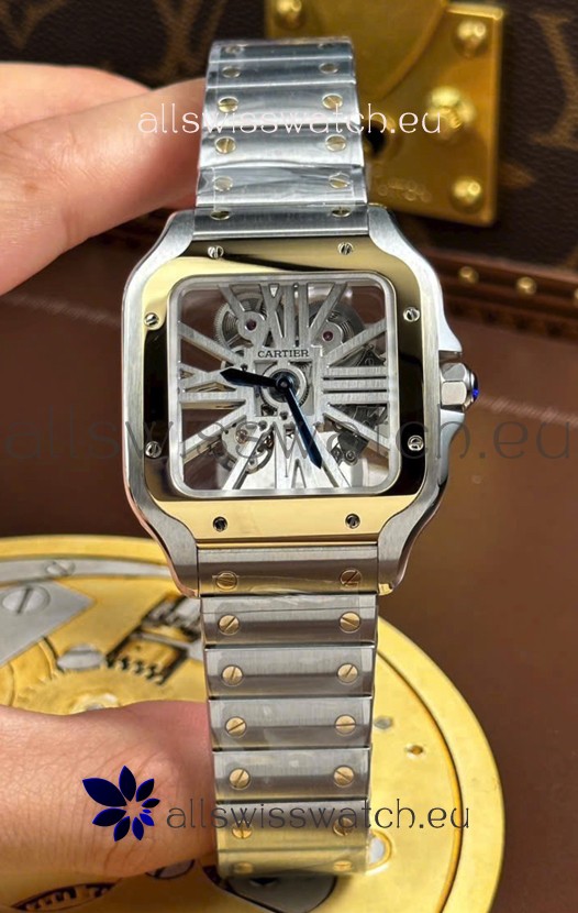 Santos De Cartier Super Clone Watch in Skeleton Dial Two Tone Casing Watch