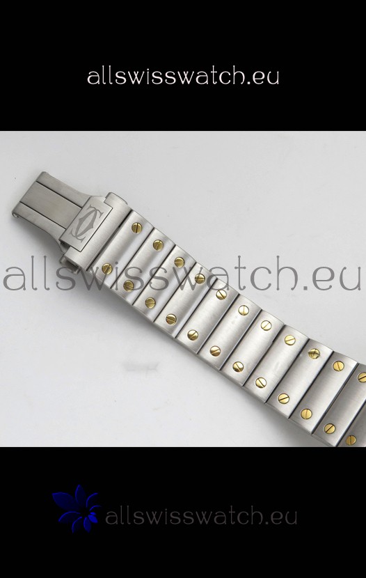 Smart Link 18K Two Tone 904L Stainless Steel Strap with Deployant Buckle complete with Cartier Markings and Engravings