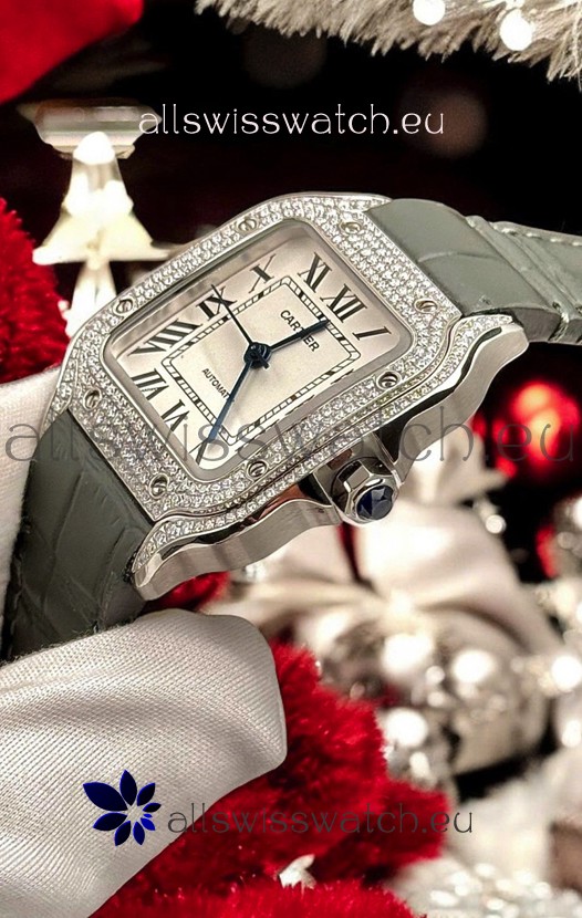You're reviewing: Santos De Cartier Watch in White Dial 39.50MM MOSSANITES Paved Bezel Swiss Replica Watch