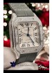 Santos De Cartier Watch in White Dial 39.50MM MOSSANITES Paved Bezel Swiss Replica Watch