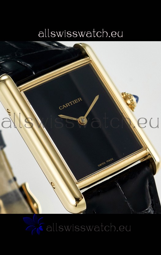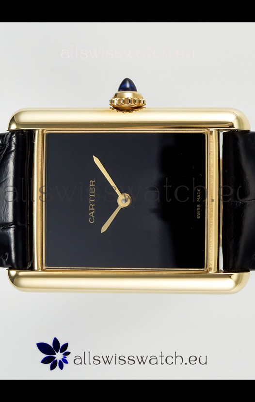 You're reviewing: Tank Must Cartier Super Clone Edition 33.7MM Watch in Yellow Gold Casing Black Dial