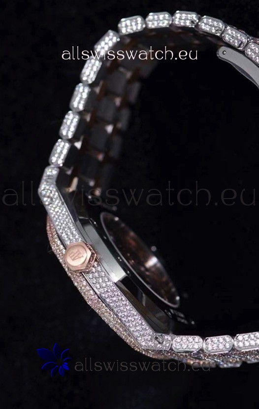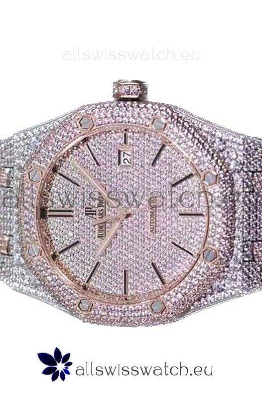 Audemars Piguet Royal Oak 15400 Iced Out Stick Markers Dial in Two Tone Rose Gold Casing Swiss Replica Watch