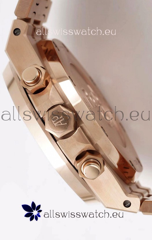Rose Gold Plating on 904L Stainless Steel Strap completed with AP Markings and Engravings as per the originals and AP Folding Clasp