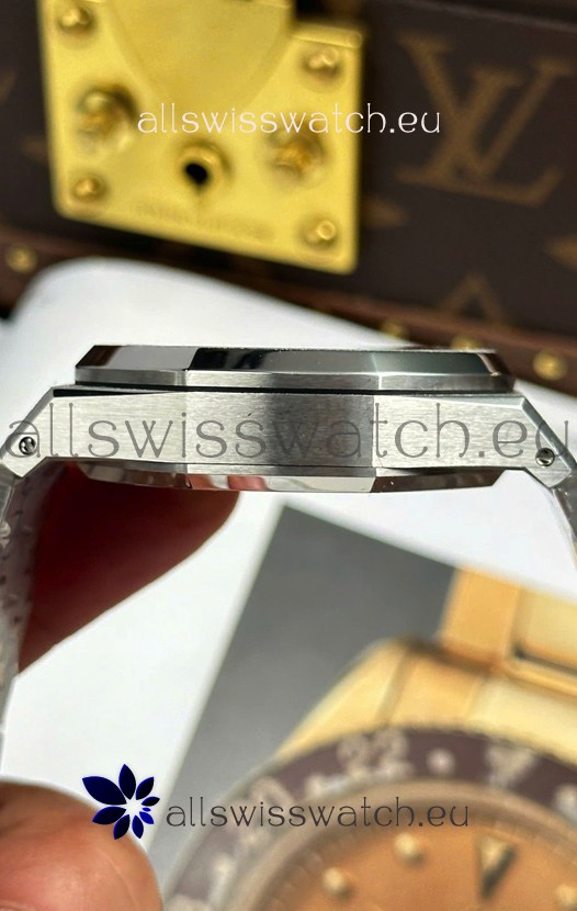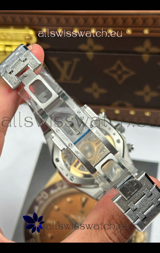 Frosted White Gold Plating on 904L Stainless Steel Strap completed with AP Markings and Engravings as per the originals and AP Folding Clasp