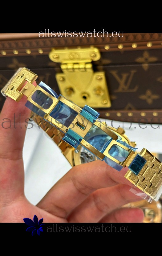 Frosted Yellow Gold Plating on 904L Stainless Steel Strap completed with AP Markings and Engravings as per the originals and AP Folding Clasp