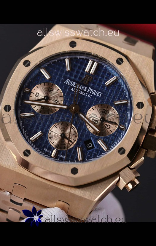 Audemars Piguet Royal Oak Chronograph Rose Gold Blue Dial Steel Strap Swiss Replica Watch