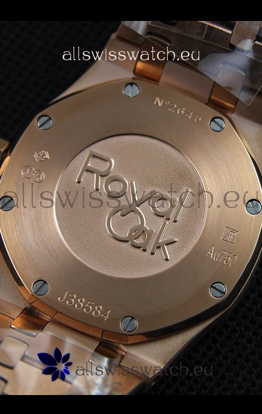 316L Rose Gold Brushed Frosted Steel casing with Audemars Piguet Markings and Engravings