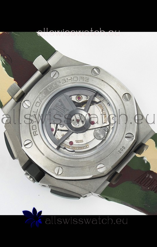 Machinery Layout exactly like Audemars Piguet 3126 Calibre Movement used in Authentic Audemars Piguet Offshore Watches built on Genuine Swiss 7753 Movement architecture with Functional stopwatch feature like the authentic with Seconds hand running at the 12 o clock Sub Dial