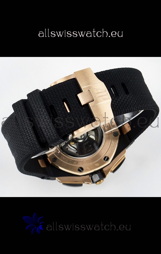 Genuine High Quality Black Rubber Strap with Audemars Piguet Tang Buckle Complete with all AP Markings and Engravings