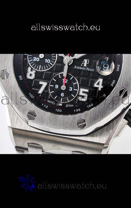 Machinery Layout exactly like Audemars Piguet 3126 Calibre Movement used in Authentic Audemars Piguet Offshore Watches built on Genuine Swiss 7753 Movement architecture with Functional stopwatch feature like the authentic with Seconds hand running at the 12 o clock Sub Dial