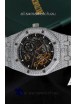 ICED-OUT Mossanites Embedded on 904L Stainless Steel Case with complete markings/engravings as per the originals.