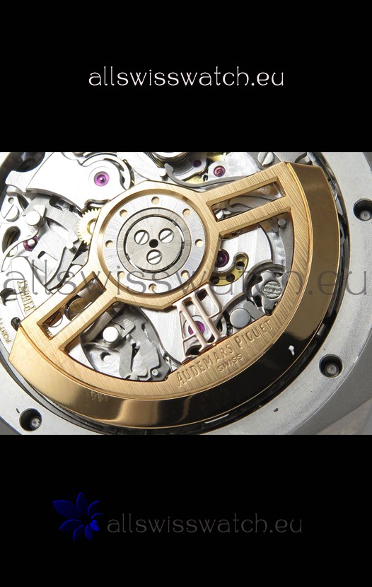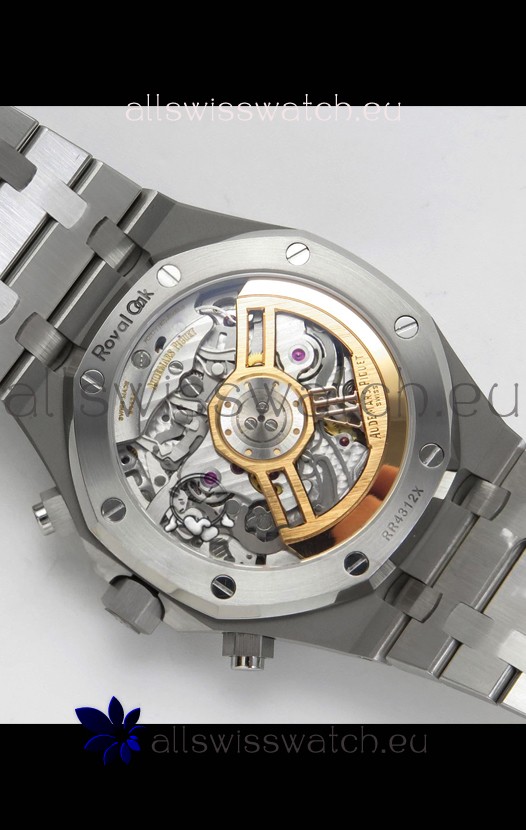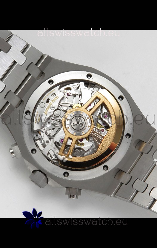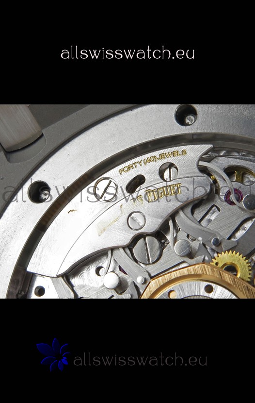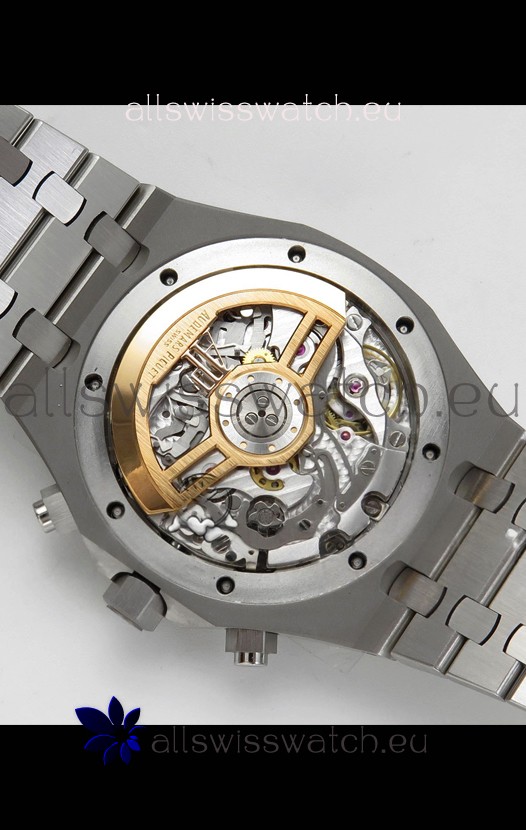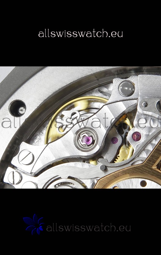 Machinery Layout exactly like Audemars Piguet 4401 Calibre Movement used in Authentic Audemars Piguet Offshore Watches. Functional stopwatch feature like the authentic with Seconds hand running at the 12 o clock Sub Dial. Functional Flyback Feature as per Genuine