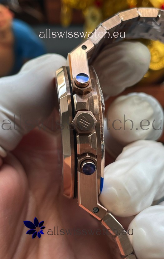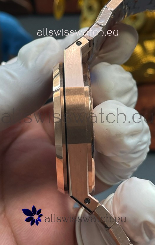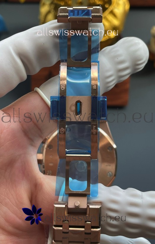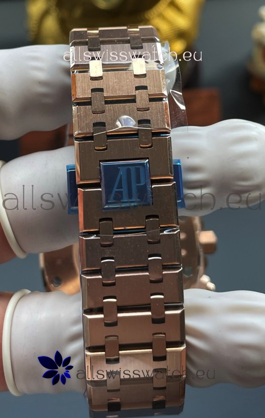 18K Rose Gold Plating on 904L Stainless Steel Strap completed with AP Markings and Engravings as per the originals and AP Folding Clasp