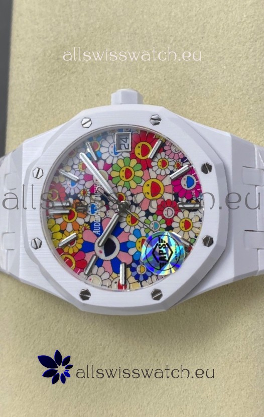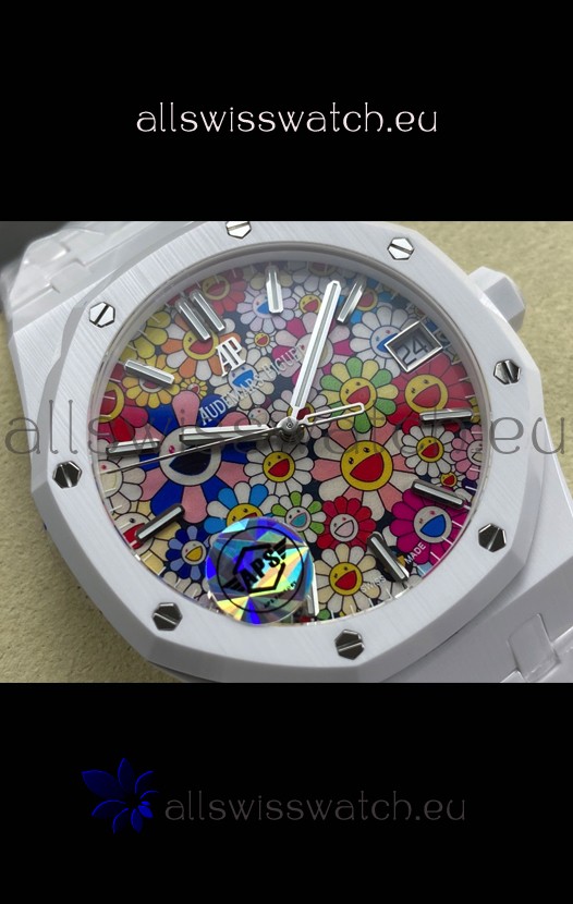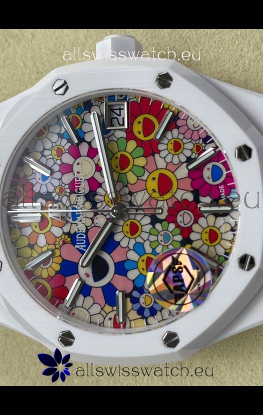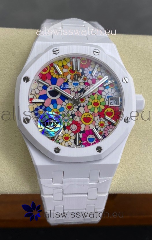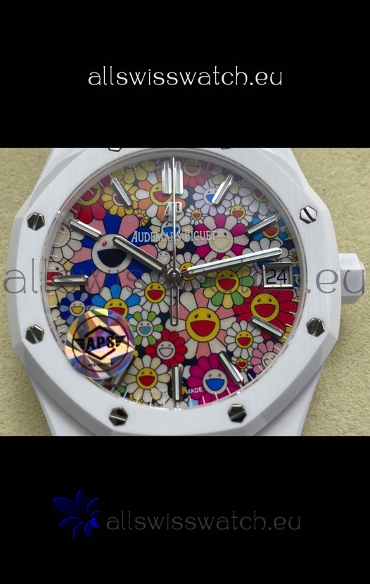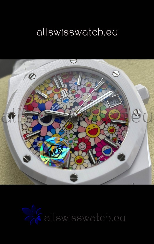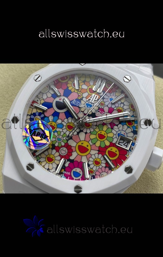 Audemars Piguet Super Clone Royal Oak White Ceramic Watch in Sun-Flower Dial