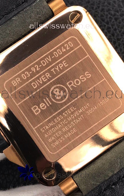 Rose Gold Plating on 904L Steel Case complete with Bell & Ross Markings and Engravings.