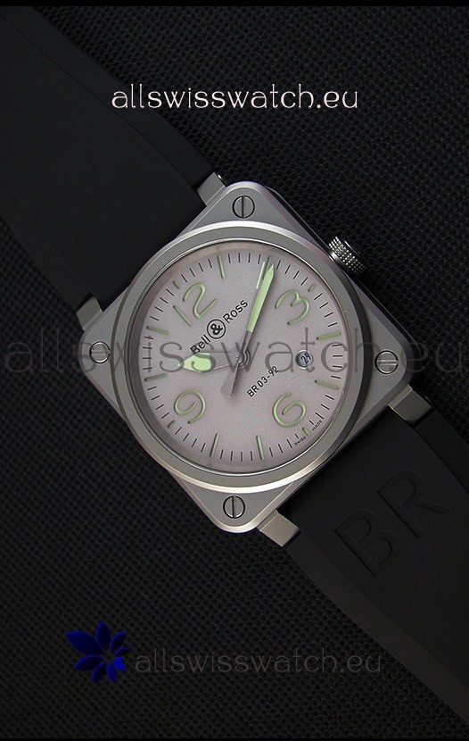 Top Grade Bell & Ross BR03-92 Horolum Grey Dial Rubber Strap Swiss Replica Watch 1:1 Mirror Replicawith Free Shipping and 1 year warranty