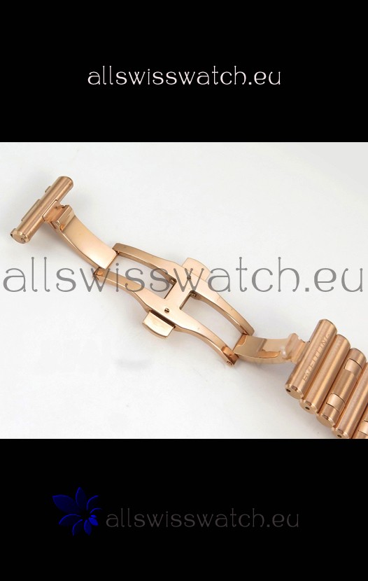 18K Rose Gold Plating on 904L Steel Strap linked with Pins as per the originals complete with Breitling Markings and Engravings as per the originals