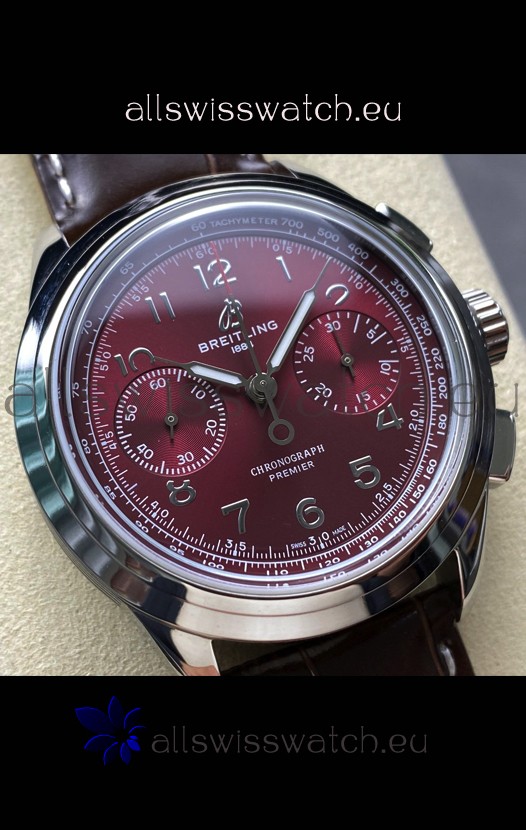 Breitling Premier B01 Chronograph 42 Edition Steel Casing Maroon Dial - 1:1 Mirror Replica Watch