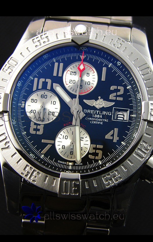 Top Grade Breitling Skyland Avenger Chronograph Swiss Replica Watch Black Dial 1:1 Mirror Replicawith Free Shipping and 1 year warranty