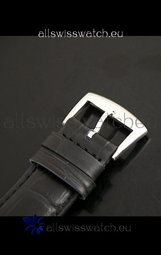 Strap: Genuine Black Leather Strap with Insignia Tang Buckle