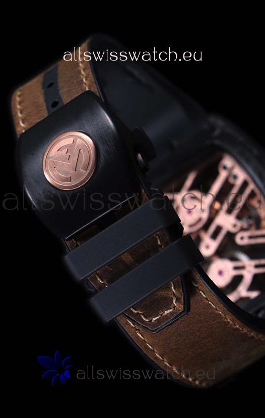 Genuine High Quality Leather Rubber Clad Strap with Franck Muller Markings and Engravings with Stainless Steel PVD Coated Double Folding Clasp