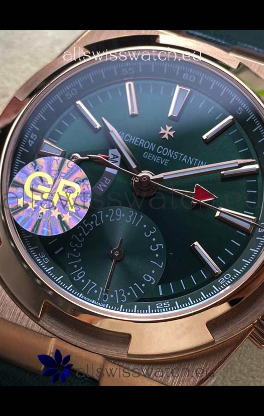 Vacheron Constantin Overseas Dual Time Rose Gold 1:1 Mirror Swiss Replica Watch in Green Dial