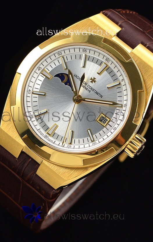 Vacheron Constantin Overseas MoonPhase Yellow Gold Swiss Watch in Brown Strap
