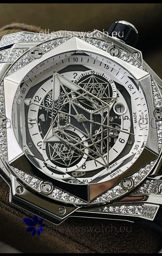 Hublot Big Bang UNICO Sang Bleu II Stainless Steel Diamonds 1:1 Mirror Quality Swiss Replica Watch