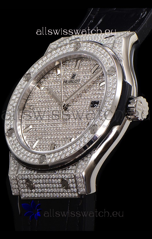 Hublot Classic Fusion Automatic Steel Diamonds Paved Dial 42MM Superclone Replica Watch