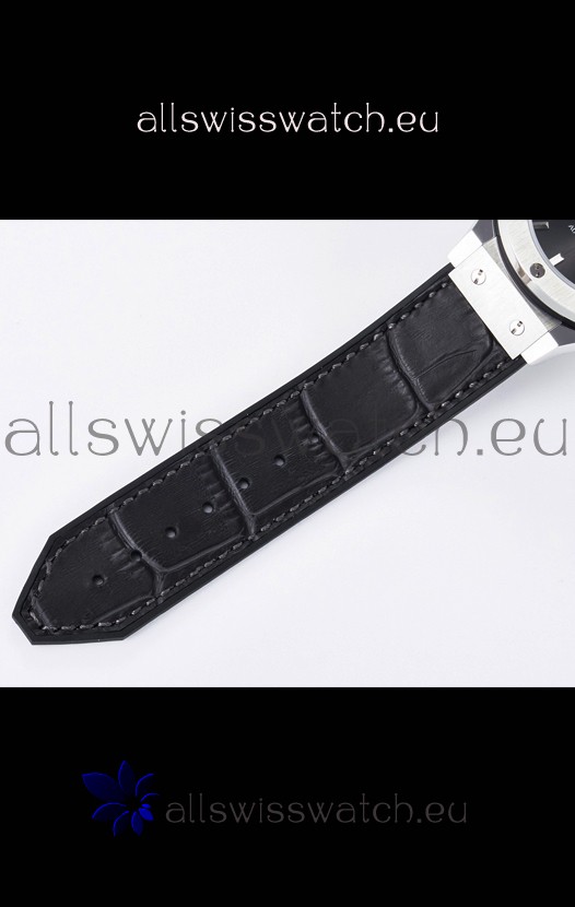 Leather Gummy Strap with Steel Folding Clasp complete with Hublot Markings and Engravings.