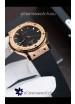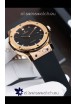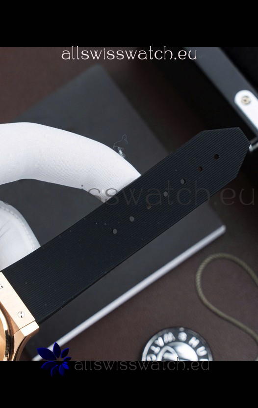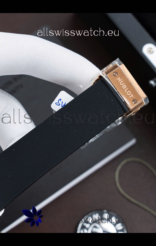 Genuine Rubber Strap with Rose Gold Folding Clasp complete with Hublot Markings and Engravings.