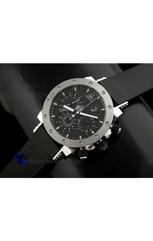 Function: Stick Markers, Date Display at 1:00 and and Fucntional Stopwatch Feature exactly like the Authentic with Three Black Functional Sub Dials