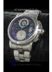 Function: Hour, Minute, Second, Date Display at 3:00, Two White Functional Subdials, Roman Markers and Fucntional Stopwatch Feature exactly like Authentics