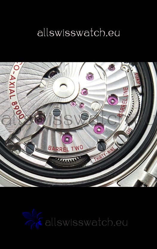 Platinum Plated Genuine Swiss 2836 Base Movement decorated to Resemble the Omega 8500 Moevment.