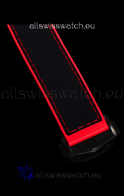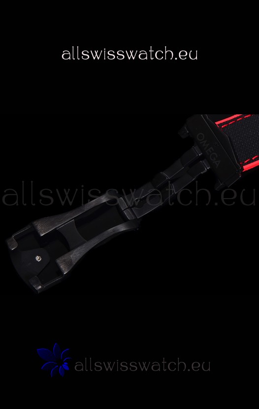 Black Rubber Strap with Omega Styled Folding Clasps complete with Omega Markings and Engravings