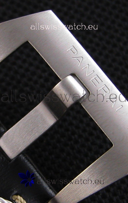 Genuine Leather Strap equipped with Stainless Steel Tang Buckle with Panerai Markings/Engravings