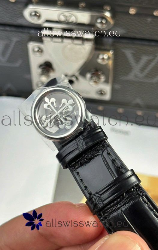 Genuine Leather Strap with Stainless Steel Tang buckle complete with Patek Philippe Markings and Engravings
