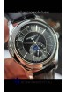 Dark Grey Dial with Functional Day/Date and Month Indicator. Moon Phase Indicator functions as 12/24 Hour Counter