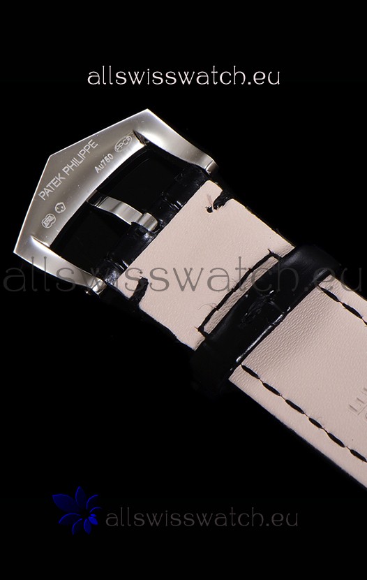 Genuine Leather Strap with Stainless Steel Tang buckle complete with Patek Philippe Markings and Engravings