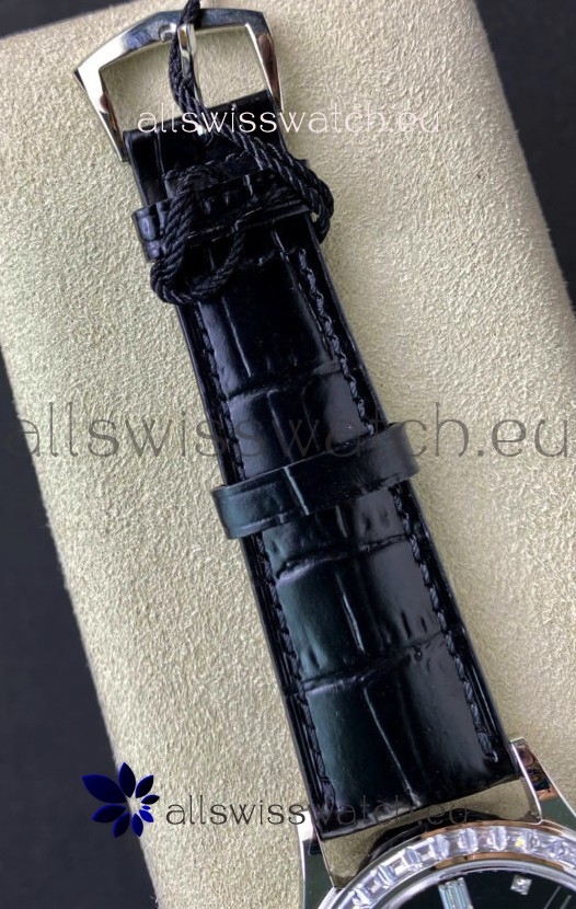 Black Dial with Diamonds Hour Markers and Date Window at 3 O'Clock