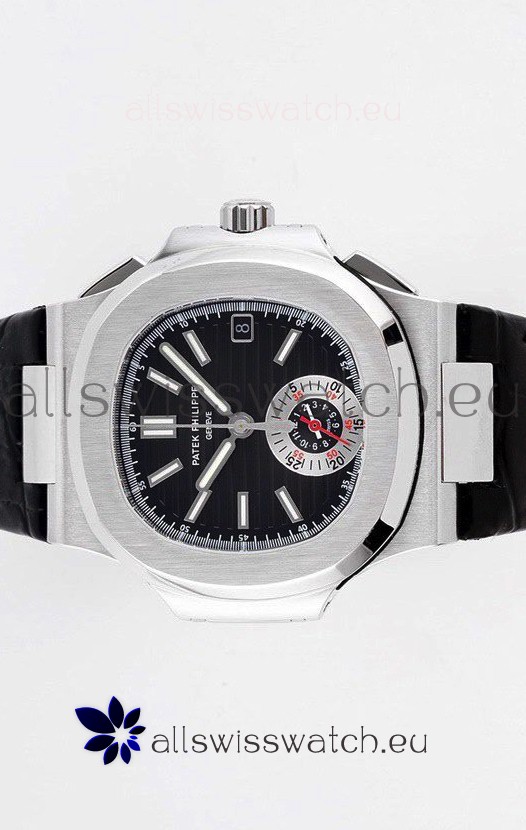 Patek Philippe Nautilus 5980/1A 904L Steel Case in Black Dial Leather Strap - 1:1 Mirror Replica