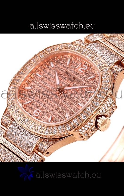 Patek Philippe Nautilus 7118R 35MM 1:1 Diamonds Paved Watch in Rose Gold Casing