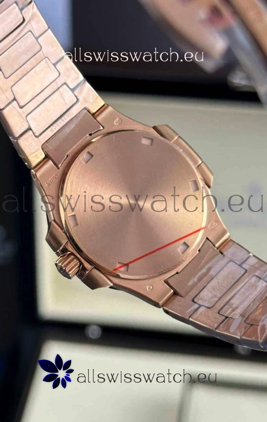Rose Gold Plating on 904L Stainless Steel Strap with Steel Folding Clasp complete with Patek Philippe Markings.
