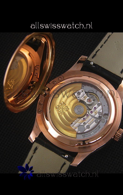 18K Yellow Gold Plating on 316L Stainless Steel Case complete with Patek Philippe Markings and Engravings.