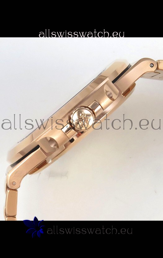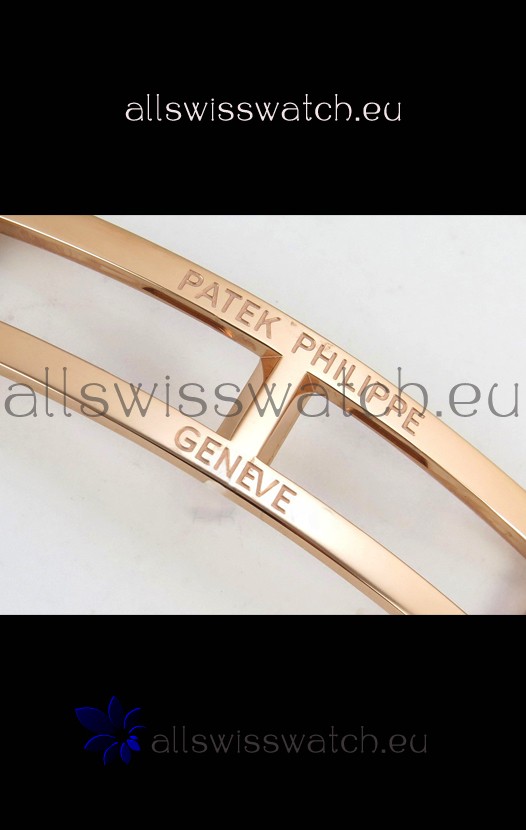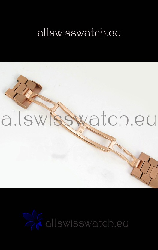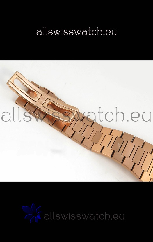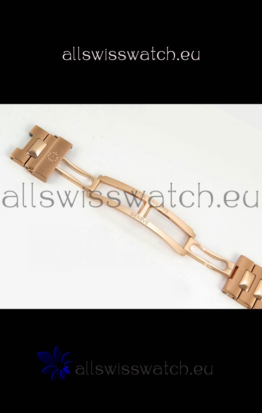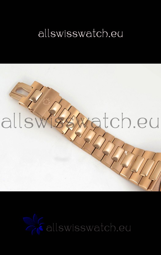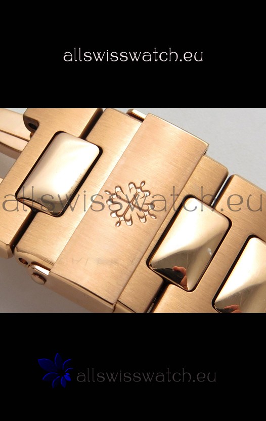 18K Rose Gold Plating on 904L Solid Stainless Steel Strap linked with Screws with Folding Patek Philippe Clasp.