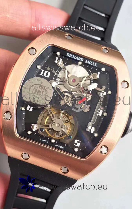Richard Mille RM001 Genuine Tourbillon Swiss Replica Watch in Rose Gold Casing
