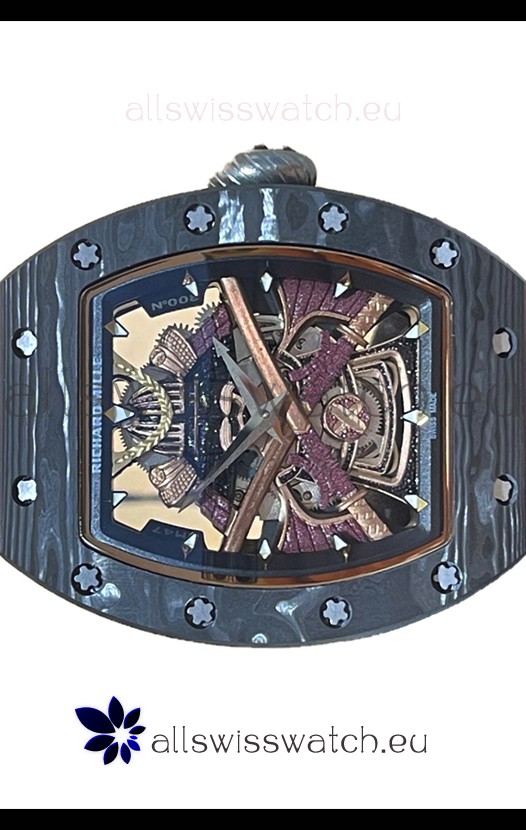 Richard Mille RM047 Samurai Genuine Tourbillon Watch in Carbon Casing Red Strap