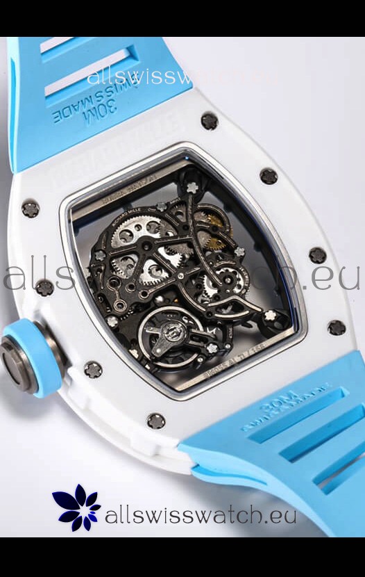 Richard Mille RM055 White Ceramic Casing 1:1 Mirror Replica Watch in Blue Strap