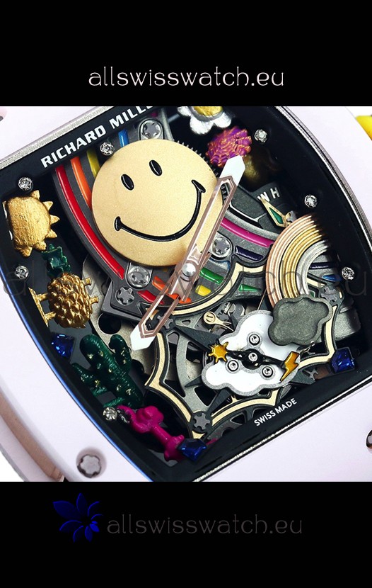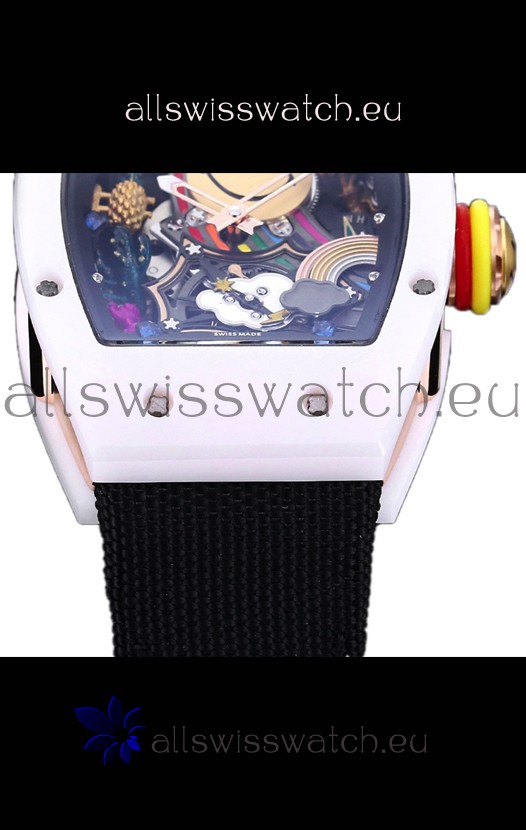 Richard Mille RM088 Smiley Tourbillon White Ceramic Casing Red Nylon Strap Replica Watch