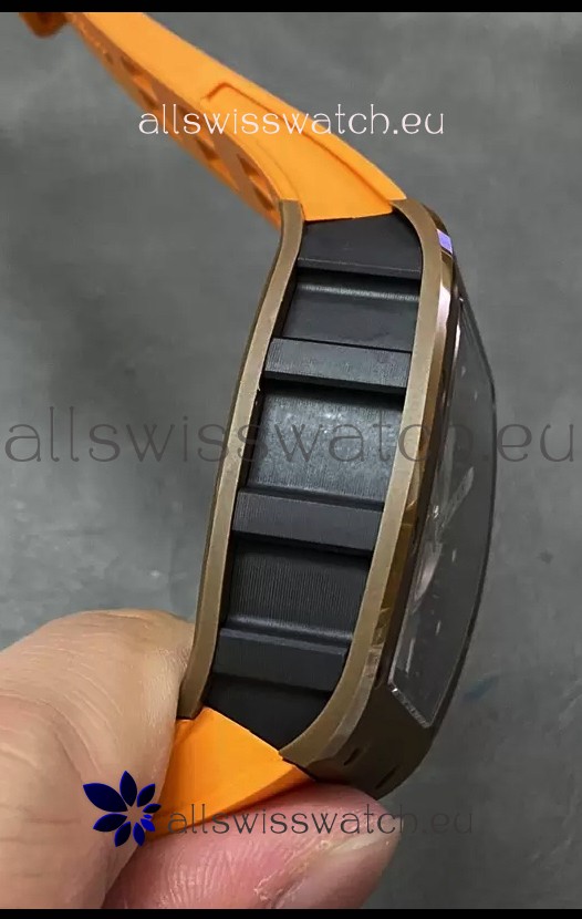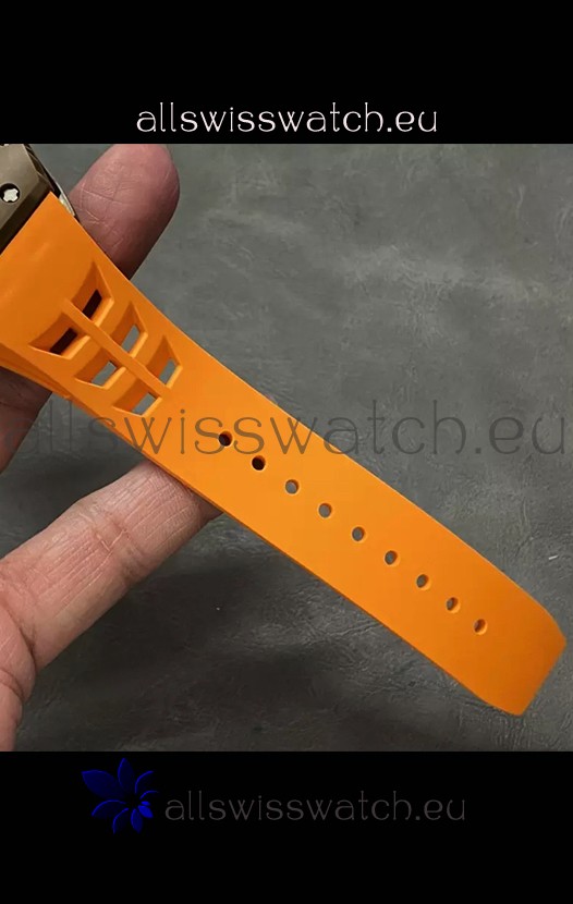 Orange Rubber Strap with Gold Plated Buckle complete with Richard Mille Markings/Engravings